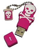 The EMTEC Scallywag USB 2.0 Flash Drive makes transferring files between PCs, notebooks and MACs quick, easy and fun! Scallywag features a trendy skull and crossbones design and is available in black, dark red and hot pink. Each drive is made of a unique rubber material and comes with a matching cap holder. EMTEC’s Scallywag USB Drive is compatible with most operating systems including Windows 98Se, 2000, XP, Me, Vista, Linux and Mac OS.